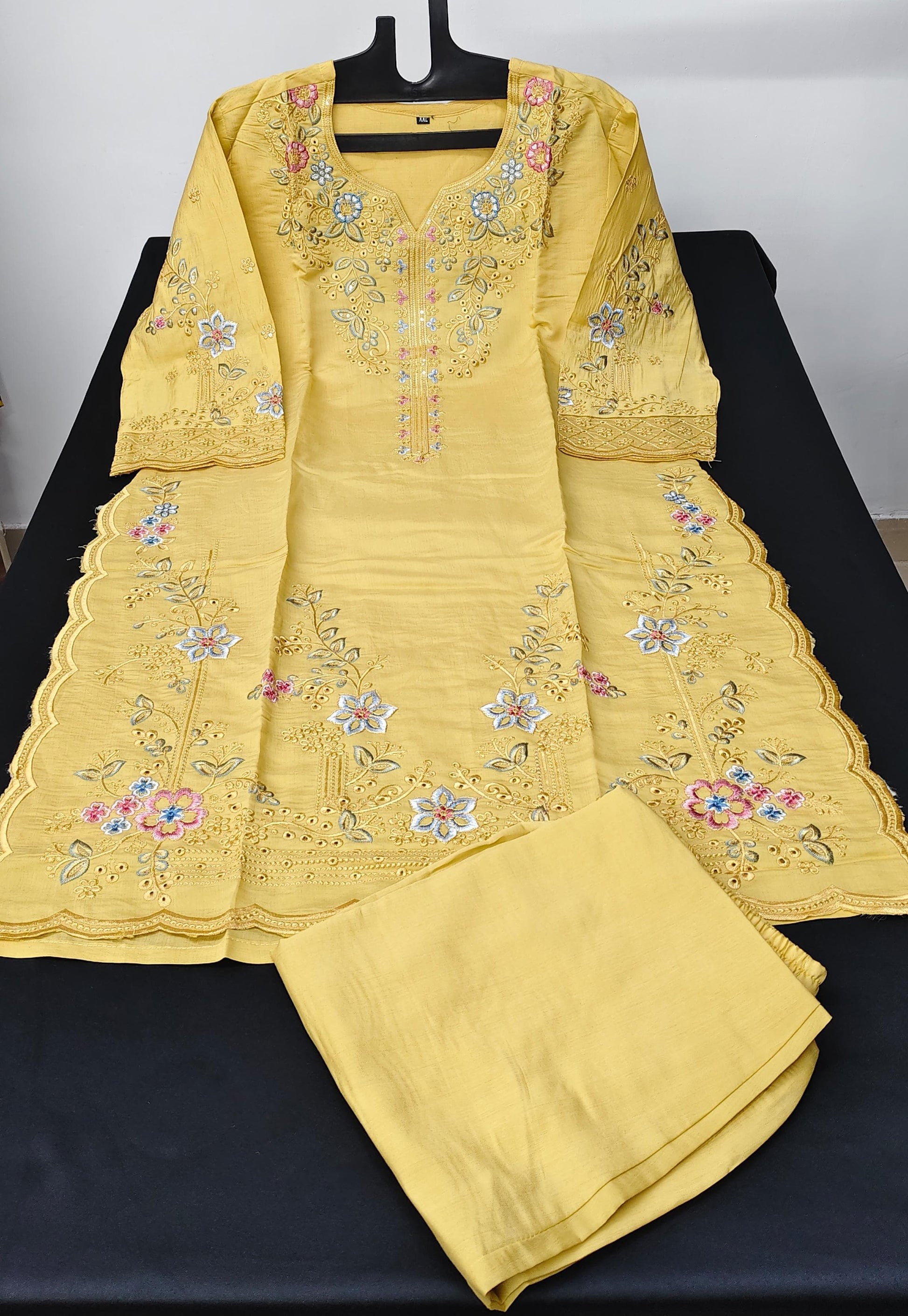 PURE MUSLIN CO-ORD SET WITH EMBROIDERY WORK