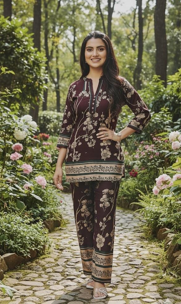PURE GAJJI SILK PRINTED CO-ORD SET, COLOUR - MAROON