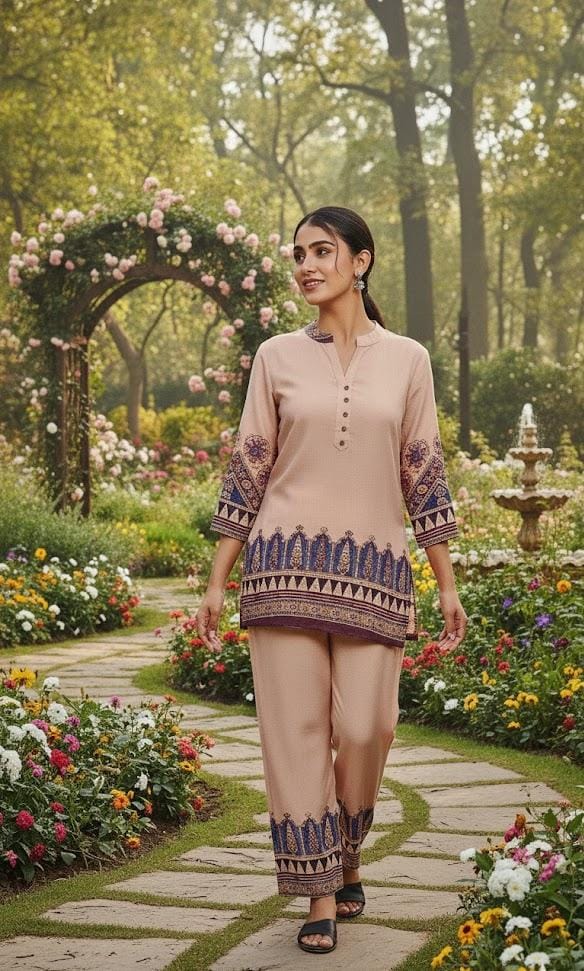 PURE MUSLIN PRINTED CO-ORD SET, COLOUR - BEIGE