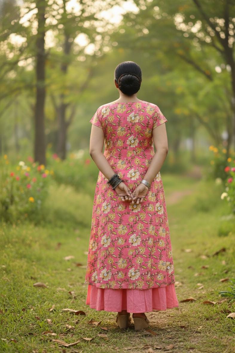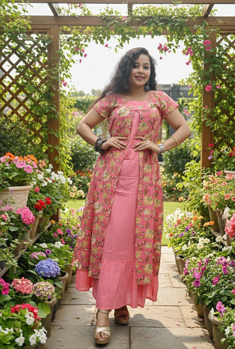 PURE COTTON PRINTED DRESS WITH DETACHABLE SHRUG.