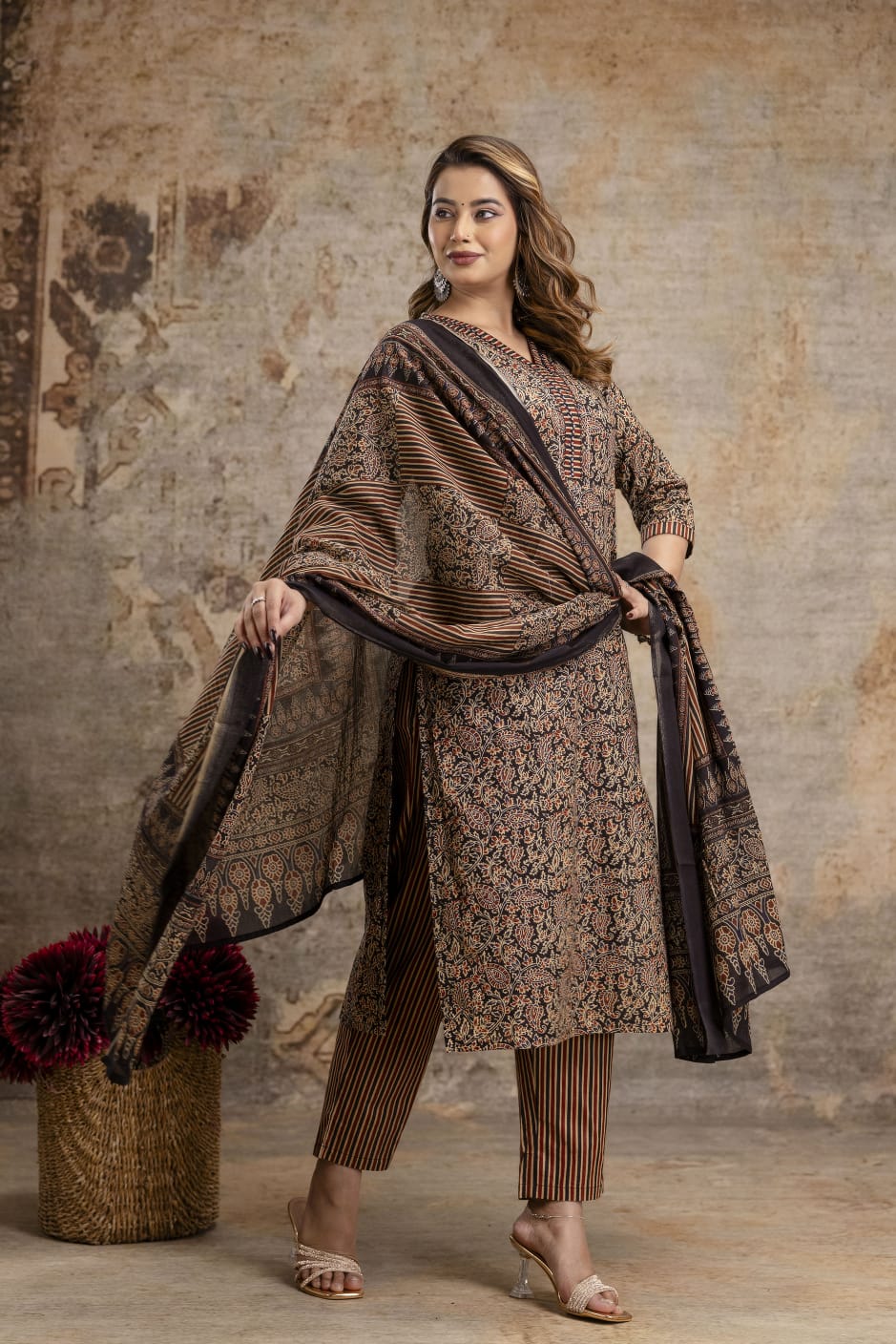 PURE COTTON AJRAKH PRINTED KURTI SET, DESIGN CODE - BOT250995AI