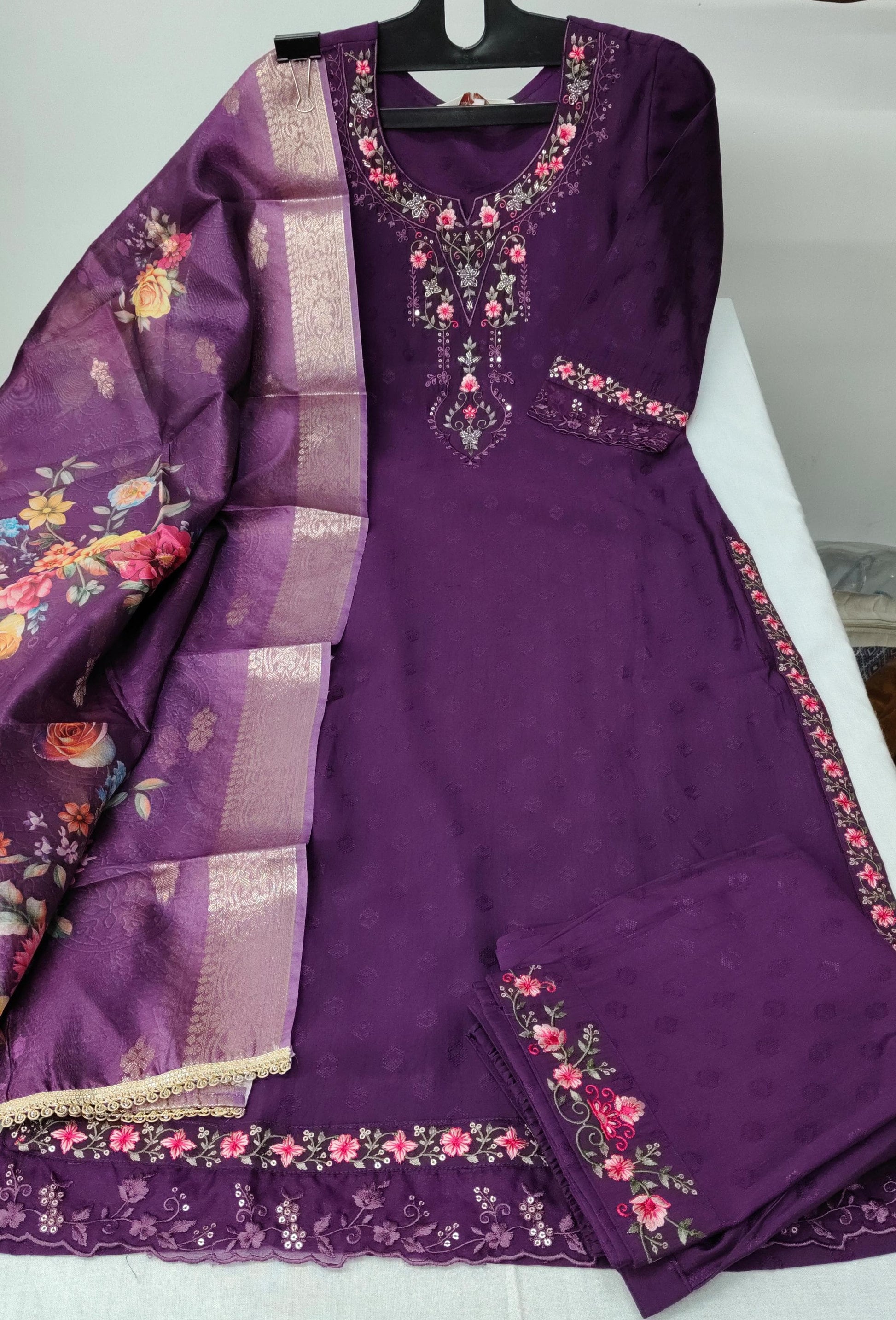 ✅ TOP - HANDWORK AND EMBROIDERY ON SELF JACQUARD VISCOUSE SILK WITH COTTON INNER